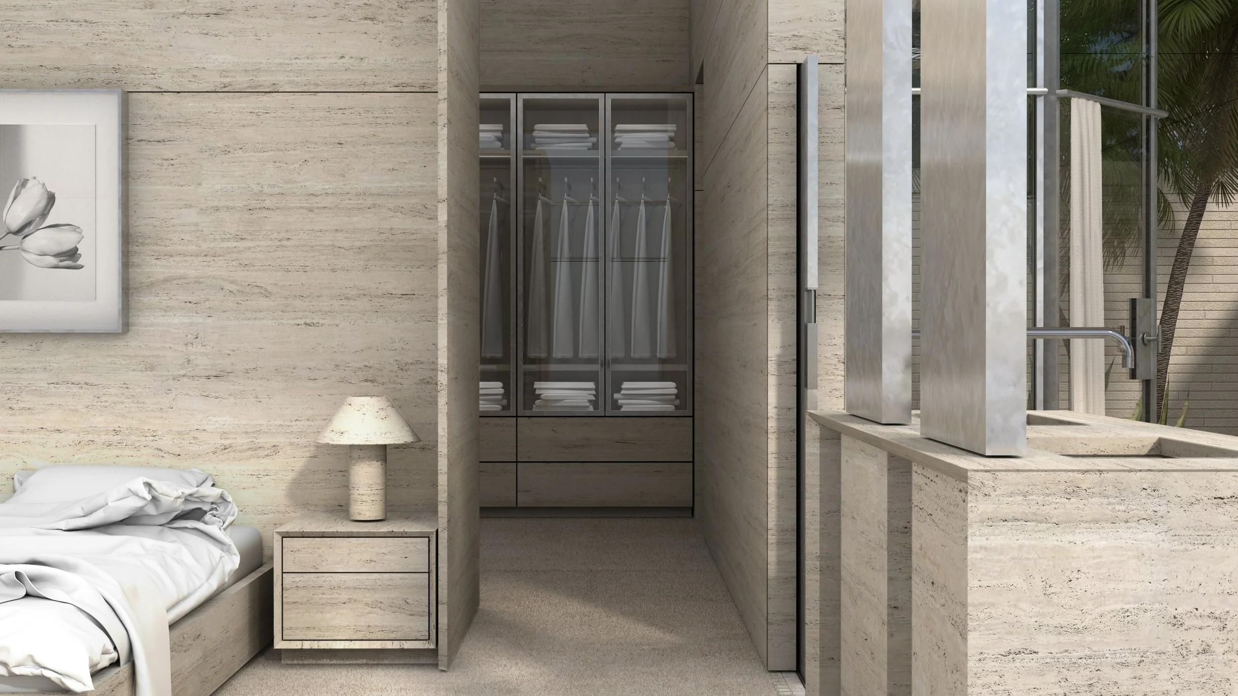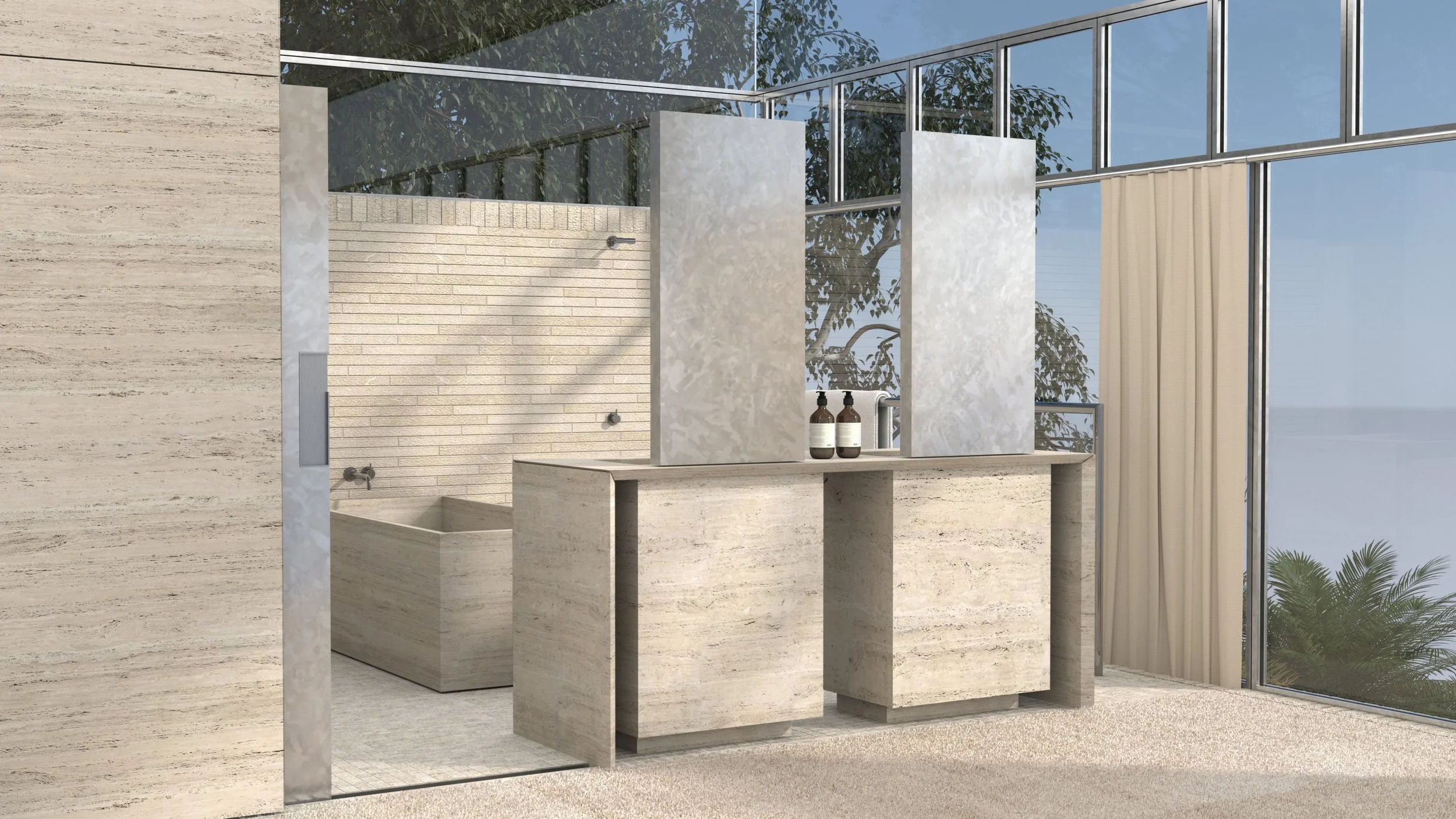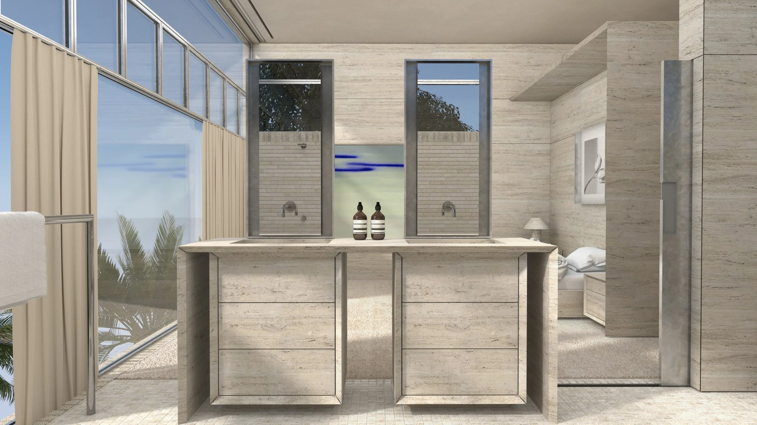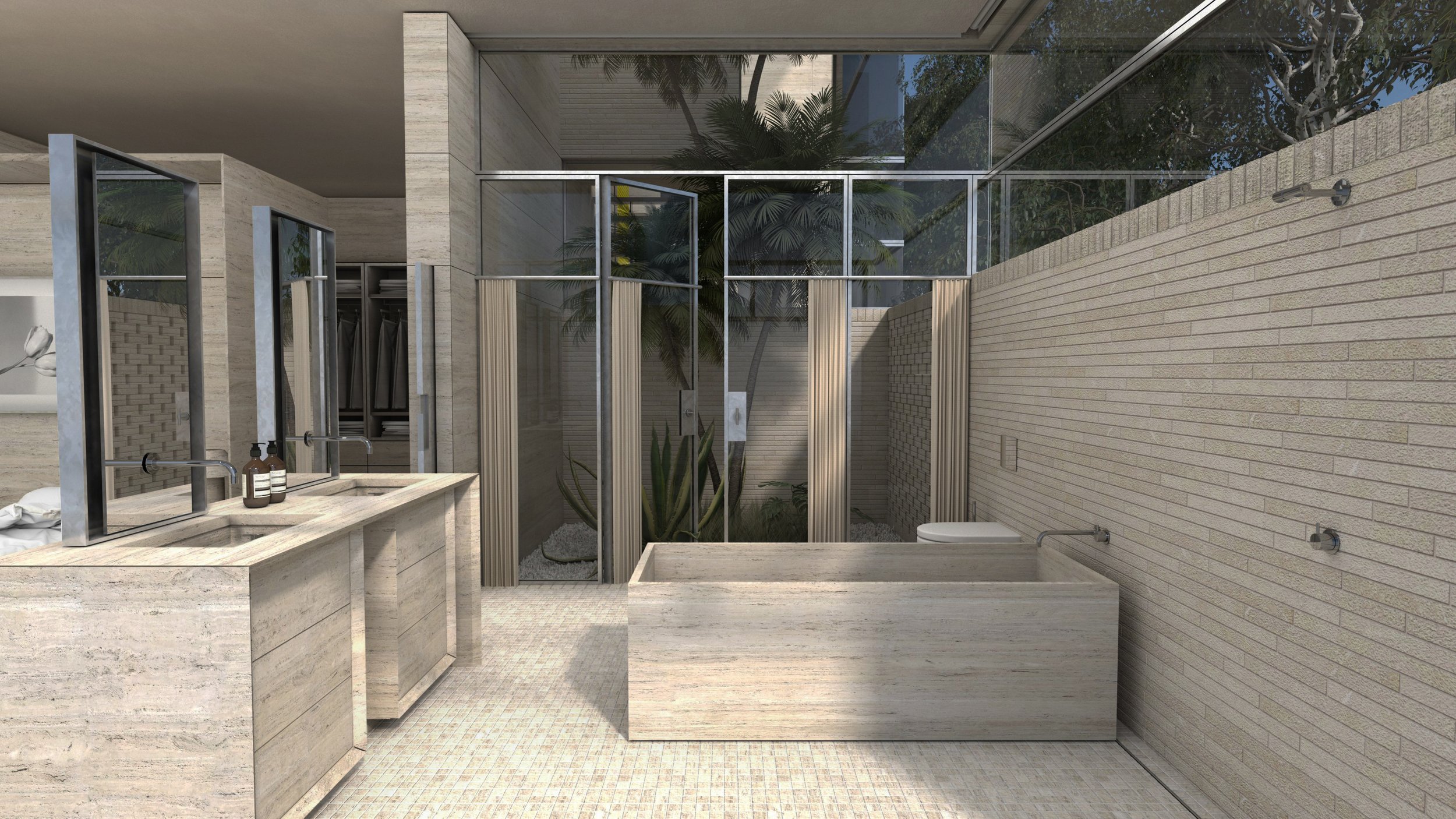 Consisting of a palette of brick, travertine and galvanised steel, Eternal house appears to be materially robust. The structure displays a facade of strength and imperishability concealing its sensitive and passionate nature. Eternal house uses reflection, transparency and camouflage to conceal its vulnerability. The house didn’t get its name from the imperishability of it’s architectonic, but rather from it’s yearning for eternal love. Eternal house promises to love and protect its inhabitants in exchange for unconditional reciprocity.
